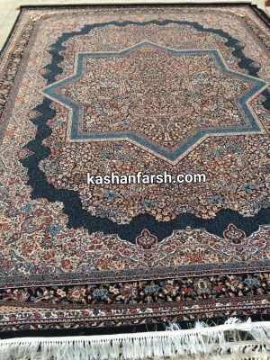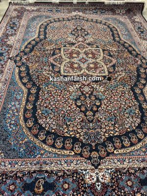 فرش کاشان طرح تاج سرمه ای - طرح 700 - 8 رنگ واقعی -